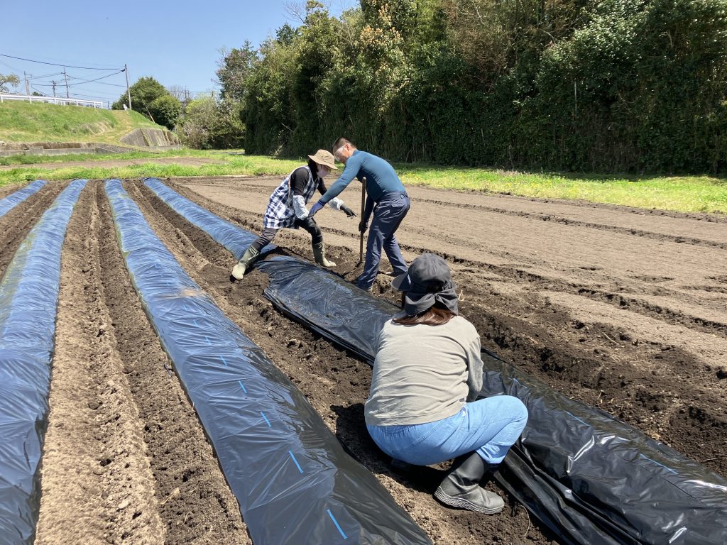 野菜を植える黒マルチ貼りのお手伝いの依頼がありました