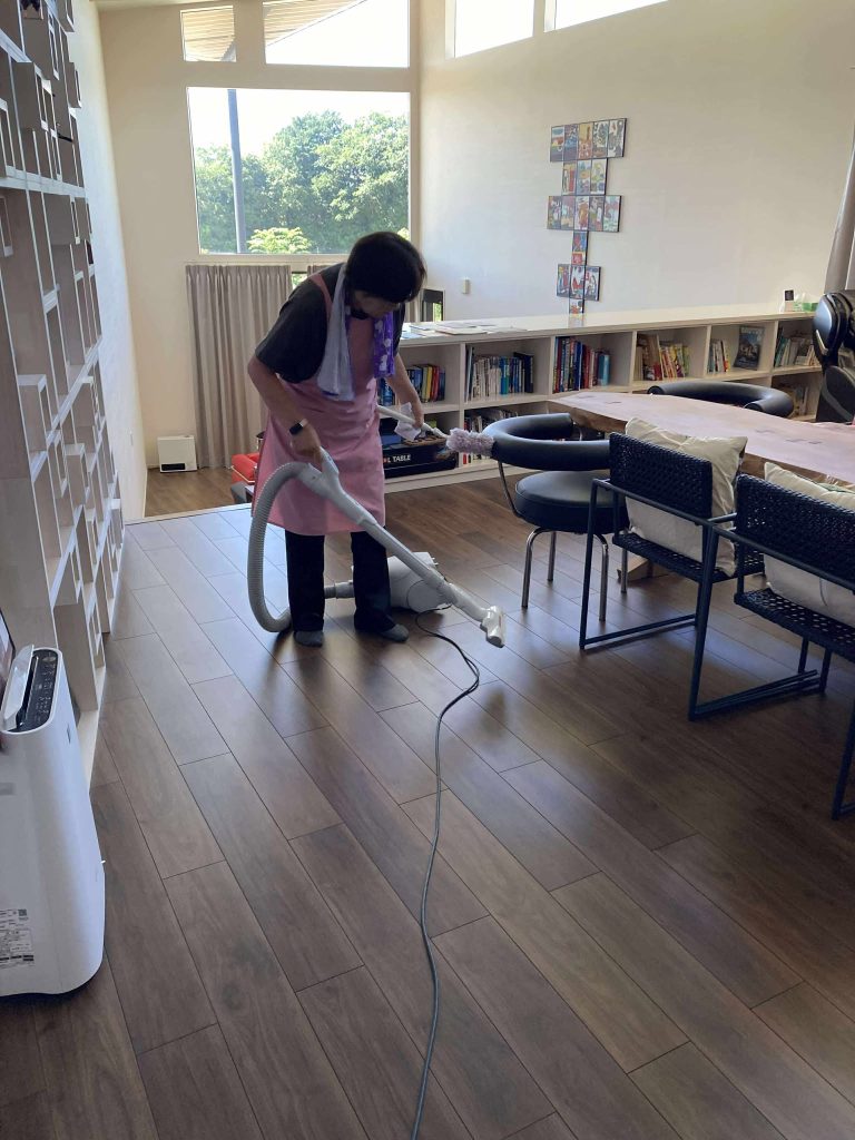 おしごと 宿泊施設のお掃除 2025年8月16日 / 奈義町で最近とってもおしゃれな一軒家の宿泊施設がオープンしました 月に数回、宿泊予約があり、そのチェックアウト後の清掃の仕事のご依頼いただくことになりました 広い施設を時間内に完了できるよう、試行錯誤中です!